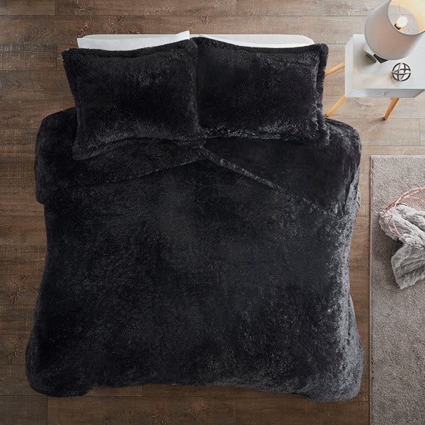 Intelligent Design Malea Shaggy Fur Duvet Cover Set in Black, King ID12-2041