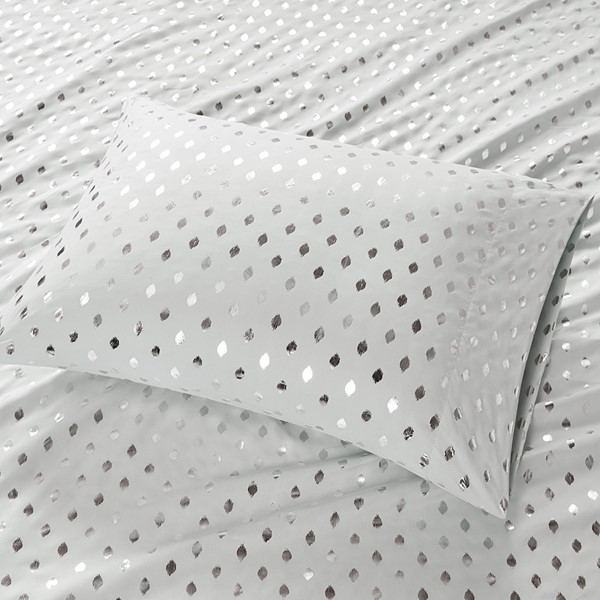 Add a touch of glam to your bedroom with the Intelligent Design Metallic Dot Printed Sheet Set. A metallic Ikat-style dot print is brilliantly displayed on the soft-hued fabric for a stunning modern look. Made from ultra-soft microfiber, this printed sheet set provides exceptional comfort and a contemporary style to update your bedroom decor. The fitted sheet fits mattresses up to 16 inches. These metallic sheets are also OEKO-TEX certified, meaning they do not contain any harmful substances or chemicals, ensuring quality comfort and wellness.
