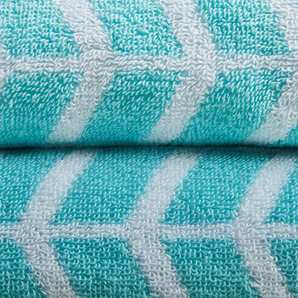 Add the Intelligent Design Nadia 6 Piece Towel Set to your bathroom for a fun and bright update! These 2-ply ring spun towels are cotton jacquard woven making them reversible in contrasting colors as well as incredibly absorbent. Each towel features a rich aqua color geometric print with a small dobby border. These cotton towels are also Made in Green by OEKO-TEX certified, meaning they do not include any harmful substances or chemicals while also using sustainable processes and socially responsible working conditions, for the best in quality comfort and wellness. Machine washable for easy care, this 6 piece towel set is perfect to freshen up any bathroom with a little style and color. Complete the look with coordinating bedding, available and sold separately.