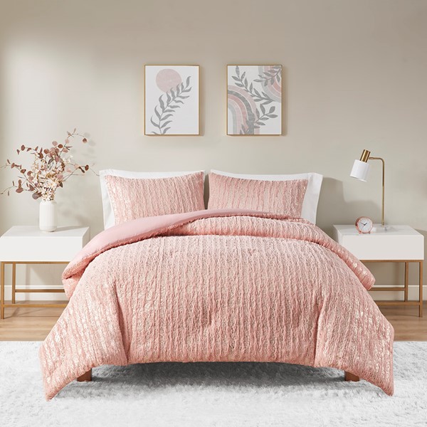 10 reviews for Intelligent Design Naomi Metallic Print Faux Fur Comforter Set in Blush/Gold, Full/Queen ID10-2242