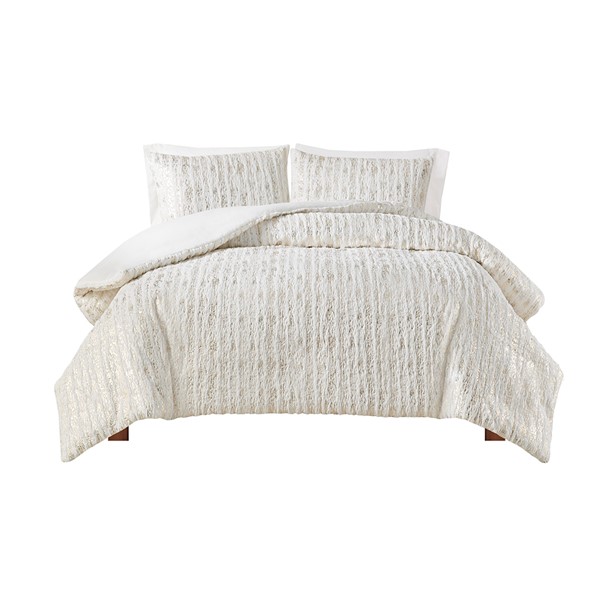 Intelligent Design Naomi Metallic Print Faux Fur Duvet Cover Set in White/Gold, Twin/Twin XL ID12-2245