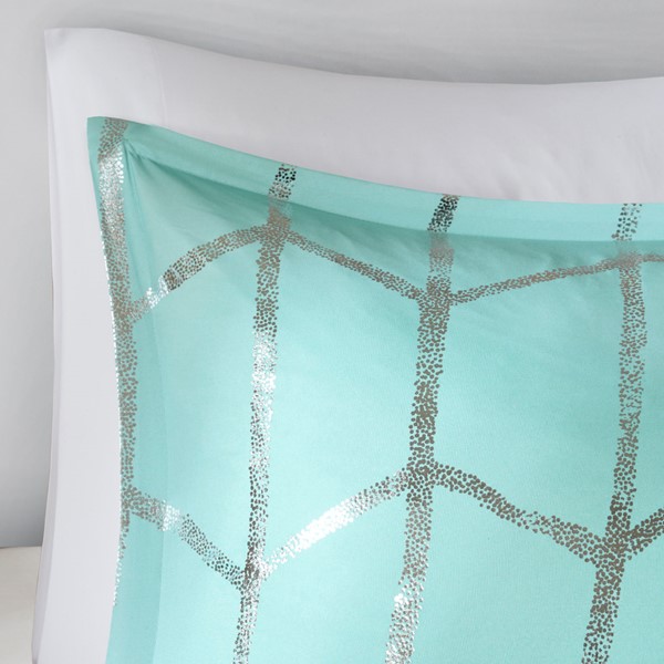 * Silver metallic geometric print on aqua comforter set