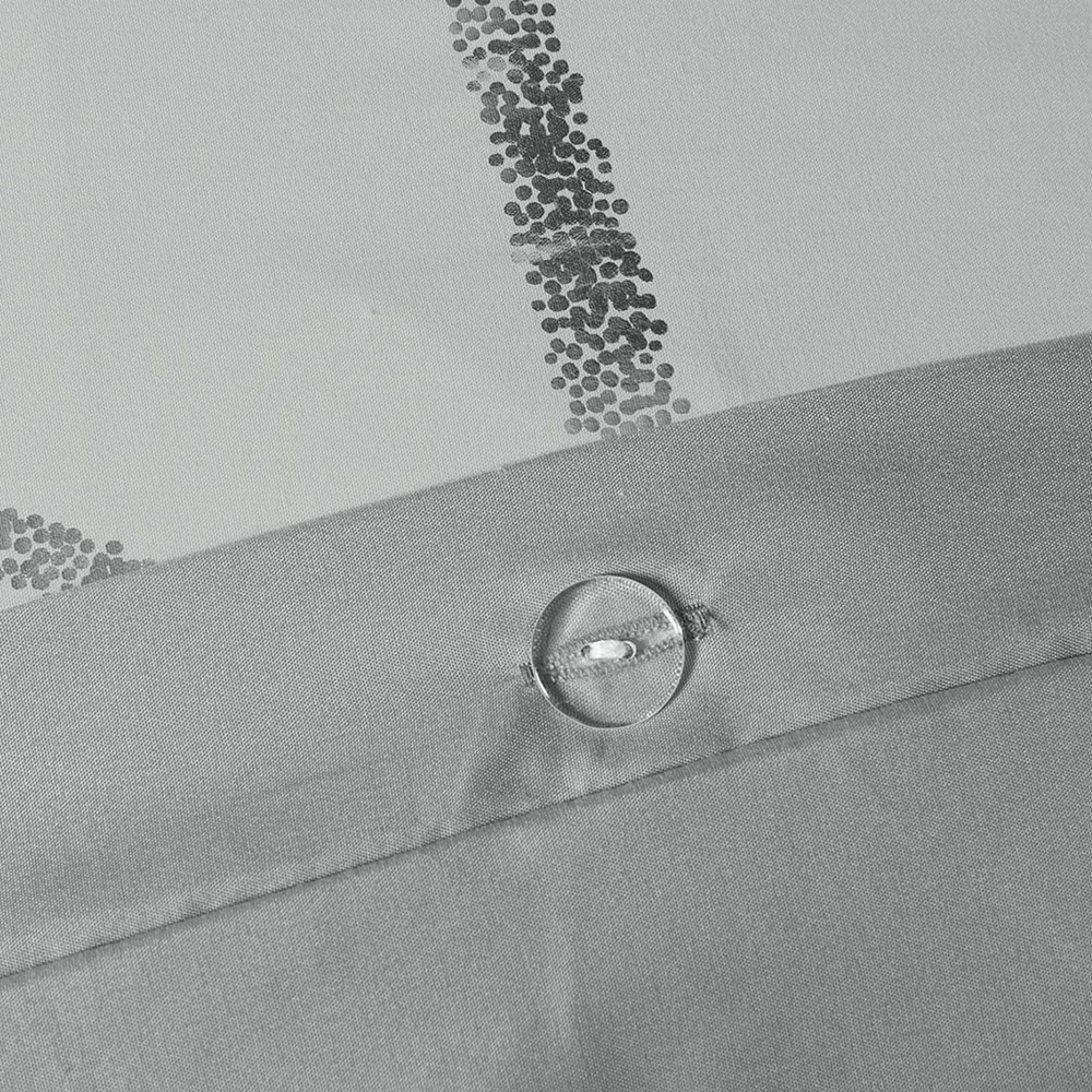 Freshen up your bedroom with the enchanting style of Intelligent Design’s Raina Printed Duvet Cover Set. The stunning duvet cover flaunts a geometric, metallic silver print against a soft grey ground for a fun and eye-catching look! Matching sham(s) echo the design seen on top of bed and pulls the entire ensemble together. Two embroidered decorative pillows with typography and metallic details complete this fabulous duvet cover set. This bedding set uses an antimicrobial treatment that provides built-in freshness protection, reducing the growth of odor causing bacteria to keep fabric lasting longer. Button closures allow you to place a comforter insert within the duvet cover and internal corner ties prevent it from shifting.