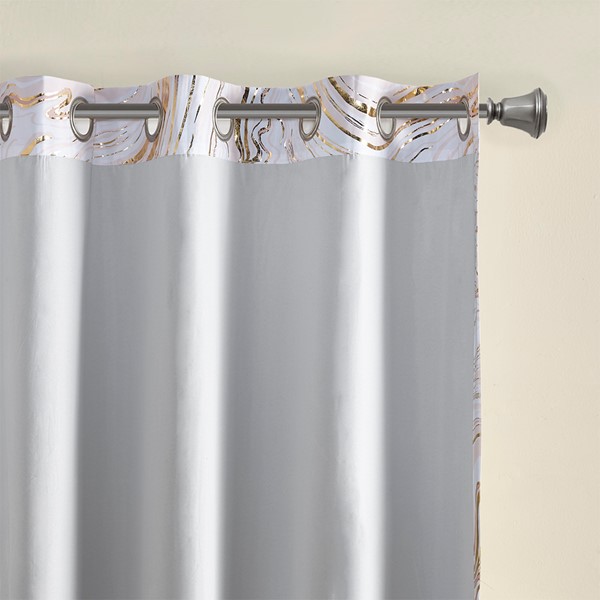 * Modern contemporary total blackout curtain panel in a marble metallic print