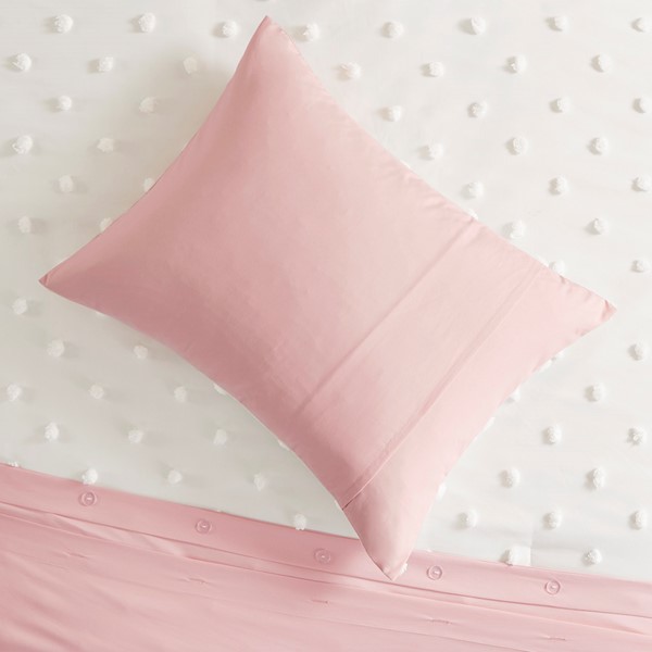 The Intelligent Design Shay duvet cover set features a vibrant colorblock design accented by clipped jacquard pompoms that add texture and charm. The duvet cover brings a pop of color to your bedroom, while coordinating shams (1 in Twin/Twin XL) complete the look of the bedding set. Machine washable for easy care, this duvet cover set is also OEKO-TEX certified and has 4 inner ties and button closures to hold your duvet insert securely (inserts not included).