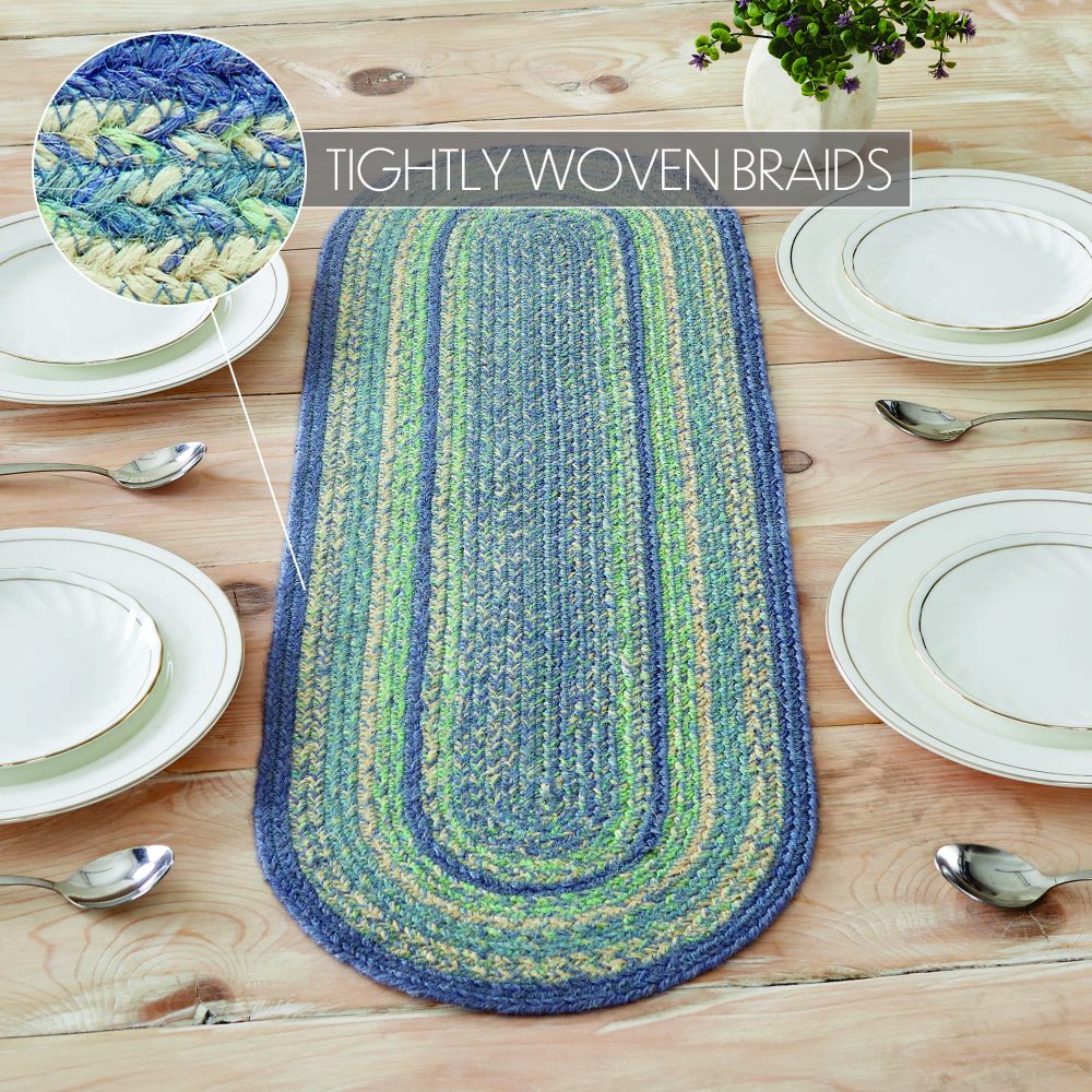 Create a joyful table for friends and family to gather round with modern color and classic texture. The Jolie Jute Table Runner includes an individual table covering measuring 12x36 inches made from a premium Jute blend. The rich texture of braided jute is given a modern twist with soft blue and green colors for a casual coastal country style. Complete your tabletop decor with other pieces from the Jolie Collection by VHC for modern farmhouse style.