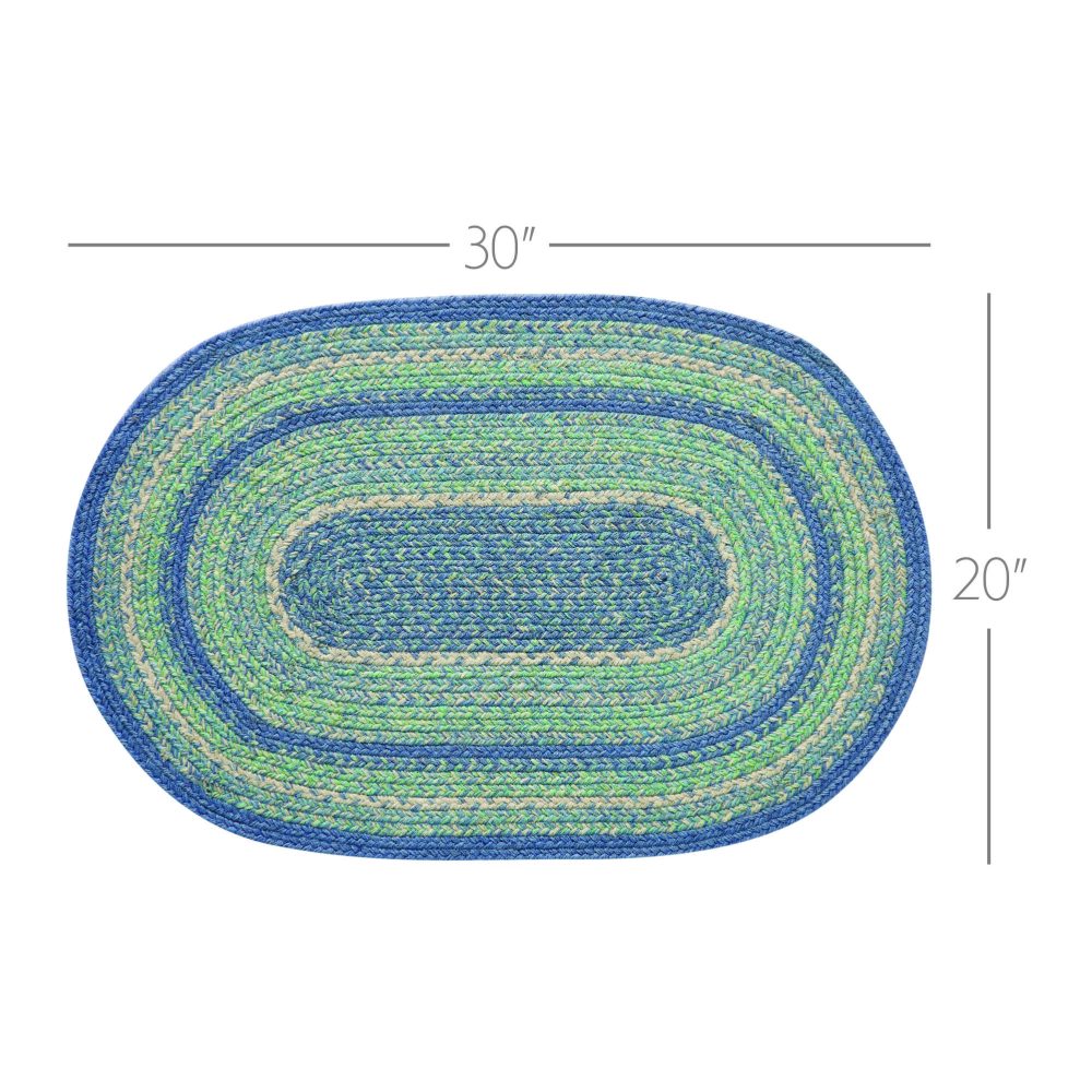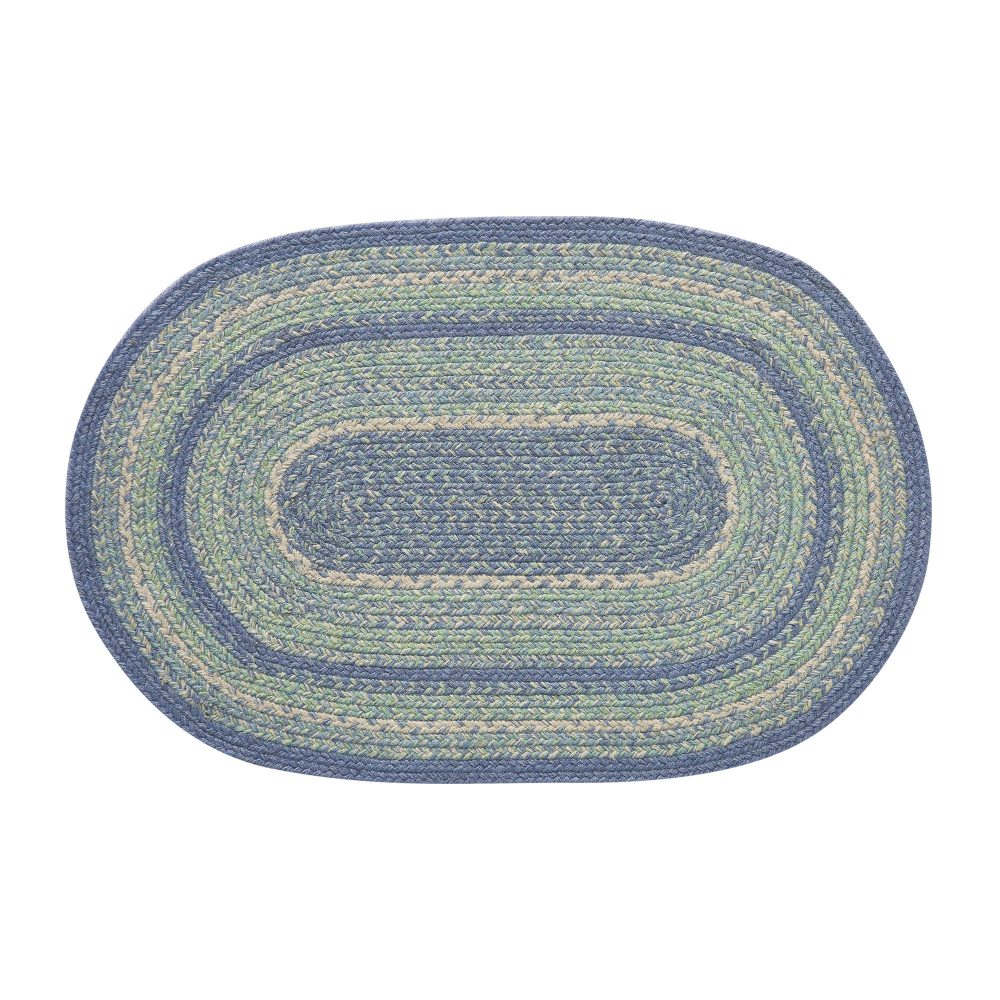 Create a bright, coastal look for your entryway with soft shades of blue and green in a curl-resistant jute blend that adds style and safety. The Jolie Jute Rug measures 20x30 inches and features a classic oval shape and tight braids constructed with a durable jute blend. The special blend relaxes faster and stays flat. Features a blend of blue, green and creme for a soft, shabby chic look that complements a wide array of country farmhouse decor.