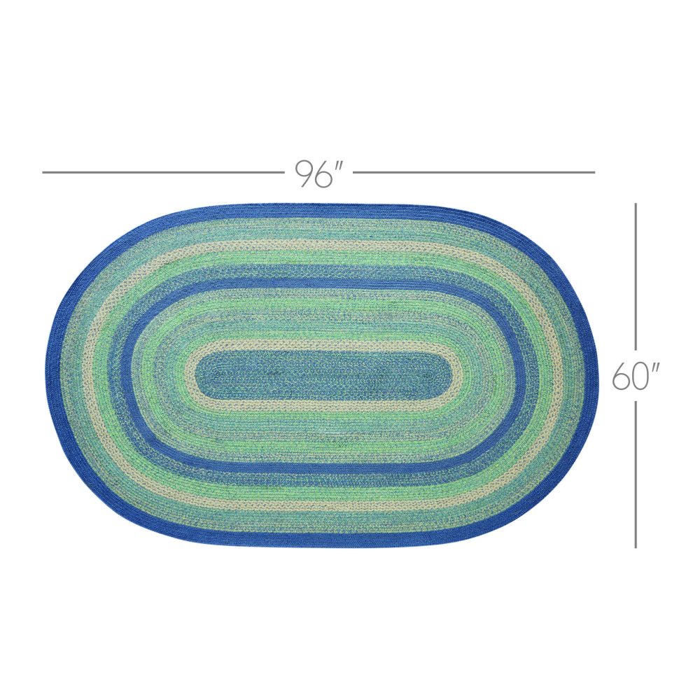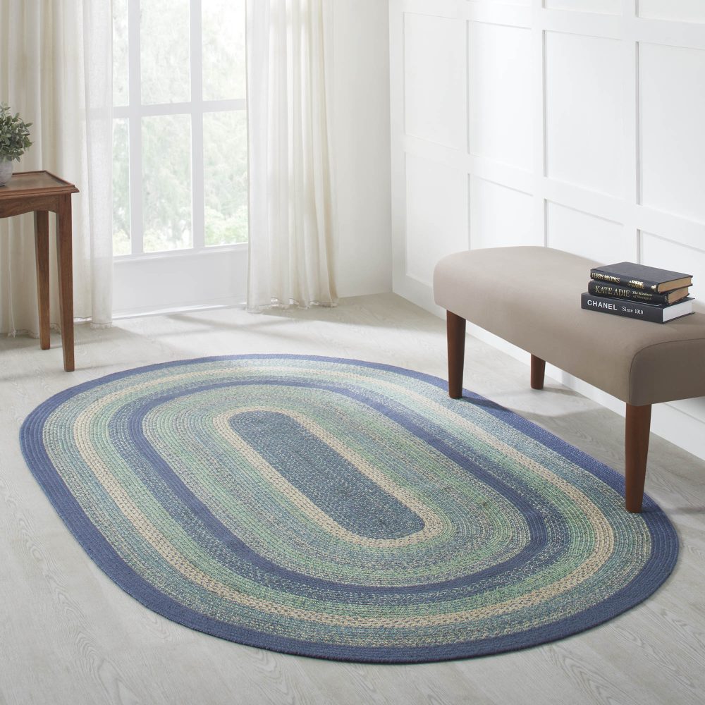 Create a bright, coastal look for your home with soft shades of blue and green in a curl-resistant jute blend that adds style and safety. The Jolie Jute Rug measures 60x96 inches and features a classic oval shape and tight braids constructed with a durable jute blend. The special blend relaxes faster and stays flat. The included PVC mat makes sure your beautifully braided jute rug stays exactly where it should. Features a blend of blue, green and creme for a soft, shabby chic look that complements a wide array of country farmhouse decor.