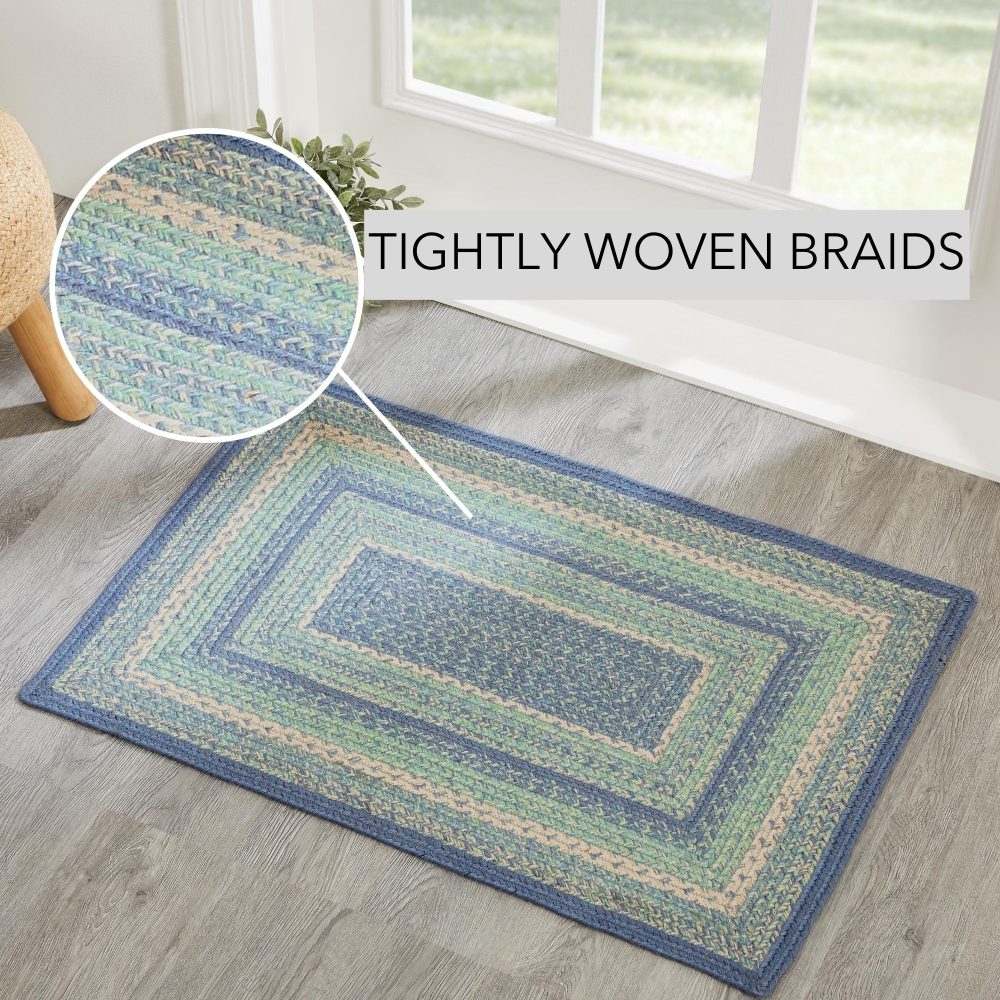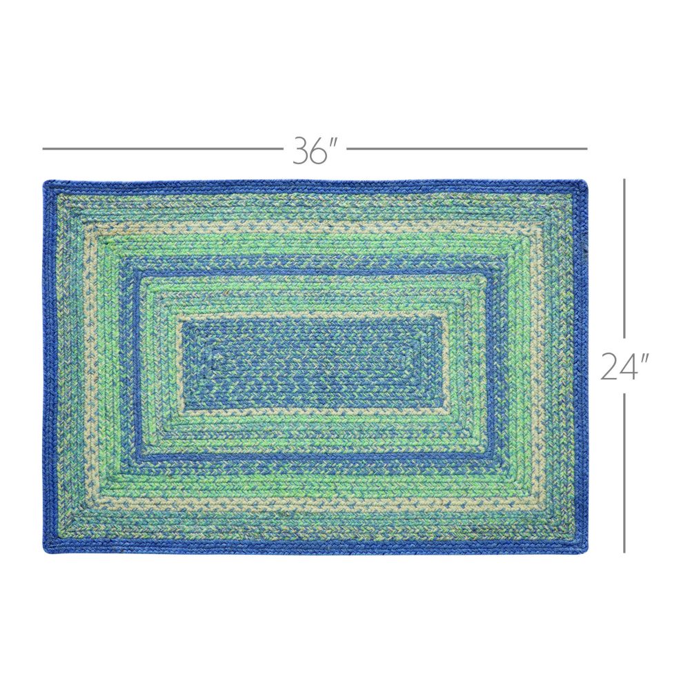 Create a bright, coastal look for your entryway with soft shades of blue and green in a curl-resistant jute blend that adds style and safety. The Jolie Jute Rug measures 24x36 inches and features a classic rectangle shape and tight braids constructed with a durable jute blend. The special blend relaxes faster and stays flat. Features a blend of blue, green and creme for a soft, shabby chic look that complements a wide array of country farmhouse decor.