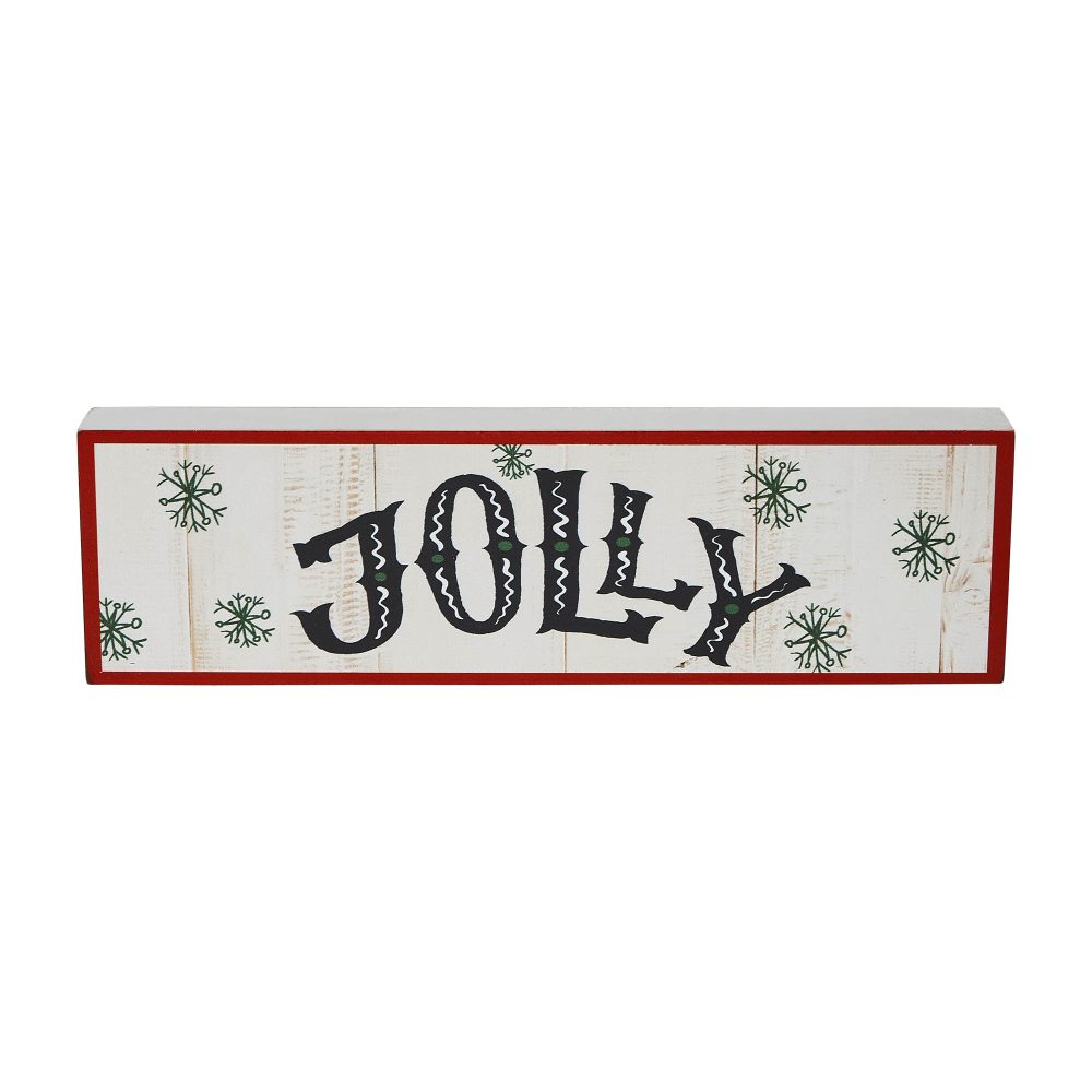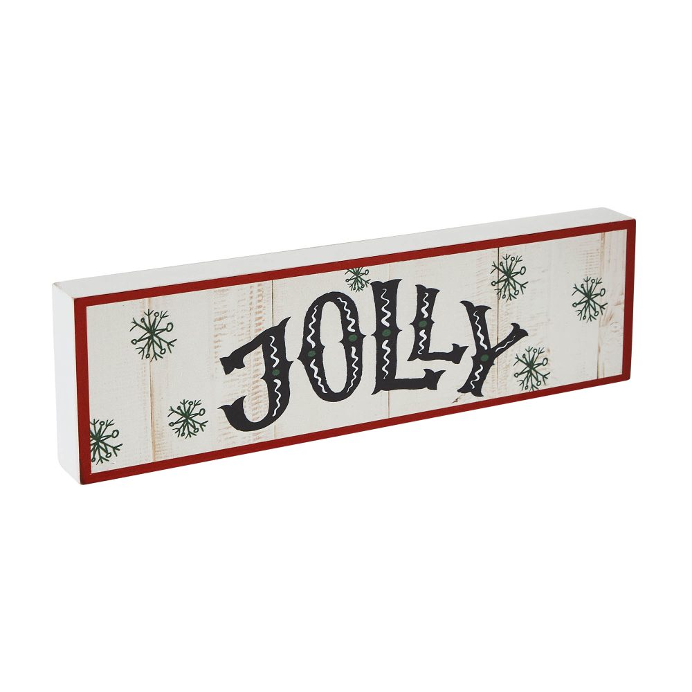 • Elevate your holiday tabletop decor with this charming block sign measuring 3×10 inches, featuring the word “Jolly” adorned with delightful snowflakes, perfect for adding a festive touch to your Christmas decorations.