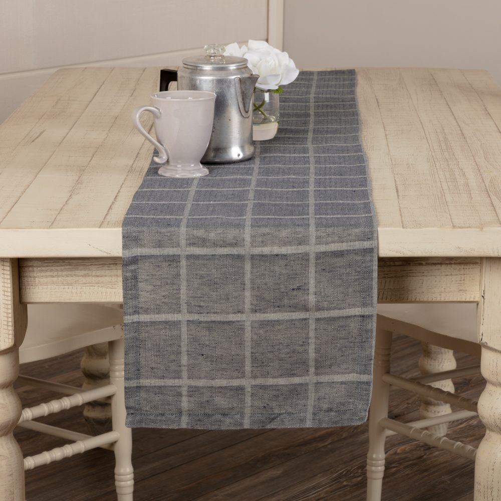 - FARMHOUSE DECOR: A classic windowpane grid covers this table runner for a classic look that pairs well with many different styles. Use as a resting place for hot plates and pans or pair it with a decorative centerpiece for gatherings with friends and family.