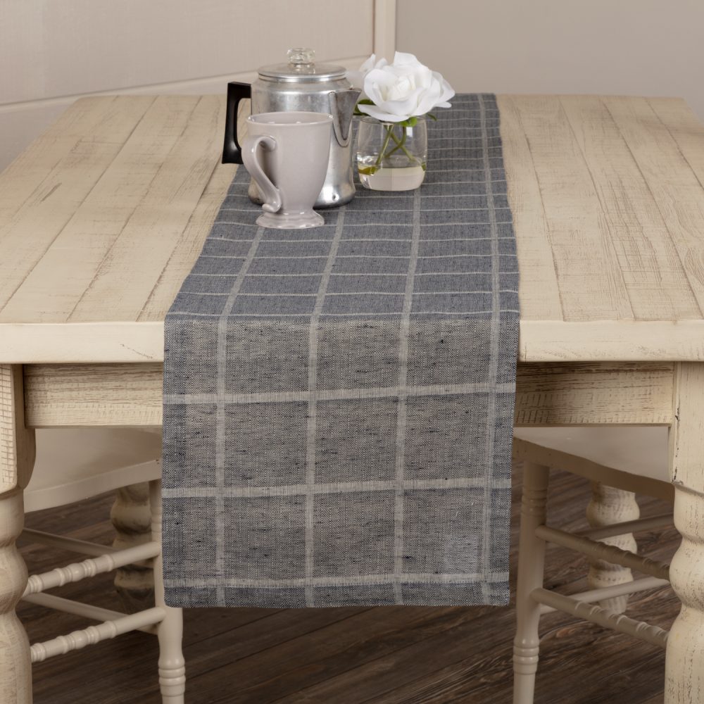 - FARMHOUSE DECOR: A classic windowpane grid covers this table runner for a classic look that pairs well with many different styles. Use as a resting place for hot plates and pans or pair it with a decorative centerpiece for gatherings with friends and family.