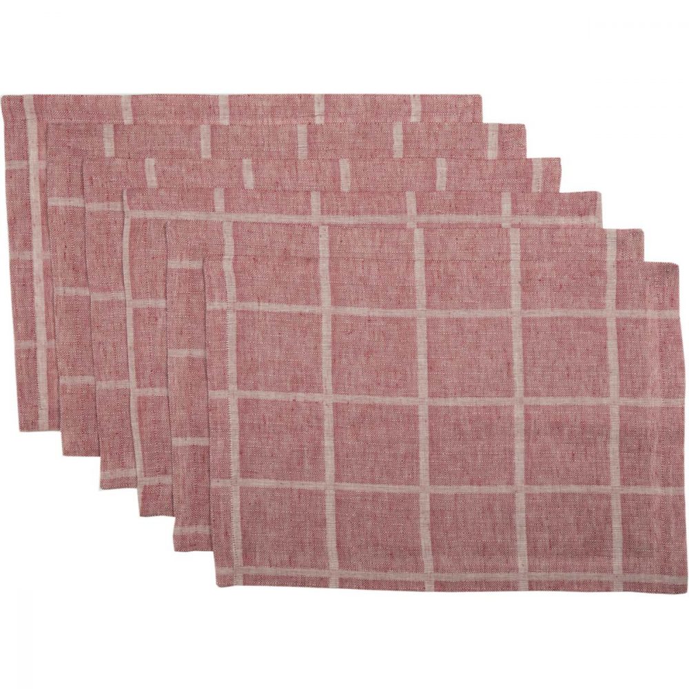 Effortlessly dress up your farmhouse table with our Julie Red Plaid Placemat Set of 6 12x18. These durable placemats feature a repeating windowpane woven grid, simply hemmed for a clean, finished look. Whether you're decorating the table for a special occasion or having a casual family dinner, the Julie Plaid Placemat Set offers the perfect contemporary farmhouse feel for your kitchen.