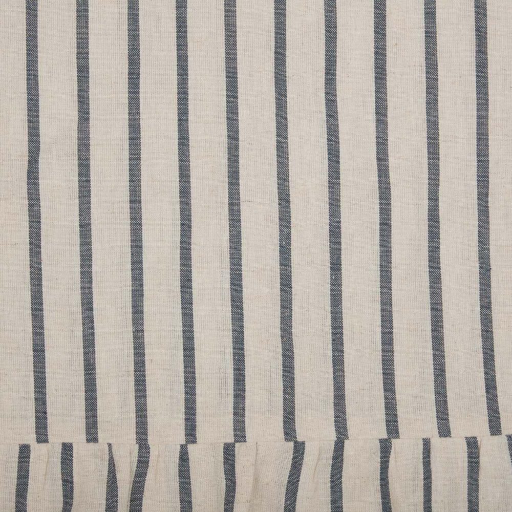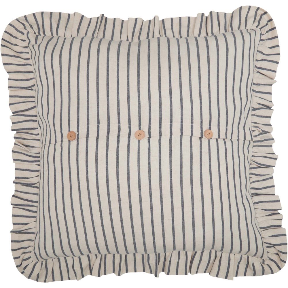 Dress your bed in cozy vintage charm with the Kaila Fabric Euro Sham. This 26x26 pillow cover is decorated with navy and creme classic stripes finished with a beautiful ruffled edge that updates your home decor with a modern country cottage feel. Our 100% cotton euro sham adds the perfect combination of warmth and timeless style to your bedroom. The country euro sham includes a button-style closure to hold your fill pillow (not included) in securely. Coordinates with the Kaila Collection by VHC for a complete vintage, country farmhouse, or shabby chic look for your room. Machine washable and iron safe.