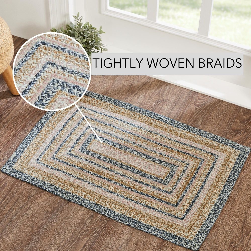 Create a bright, springtime look for your entryway with soft shades of blue and pink with a seasonal design in a curl-resistant jute blend that adds style and safety. The Kaila Jute Rug measures 24x36 inches and features a classic rectangle shape and tight braids constructed with a durable jute blend. The special blend relaxes faster and stays flat. Features a blend of dusty blue, misty rose and creme for a soft, shabby chic look that complements a wide array of Spring country farmhouse decor.