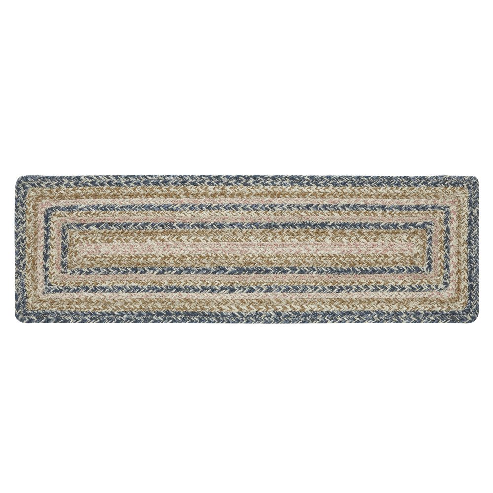 Protect stairways from damage and add style with braided jute in bright, modern tones. The Kaila Jute Stair Tread Rectangular includes one 8.5x27 inch stair tread back by a latex spray to help prevent slipping. The low-profile jute features an innovating blend of 80 percent Jute and 20 percent cotton and other fibers to help the tread lay flat and resist creasing. This rectangle-shaped tread features a blend of blue, misty rose and golden tan braids for a cheerful, country boho look. Coordinates with the Kaila Collection by VHC for a complete modern farmhouse set featuring bedding, rugs, kitchen accessories and more.