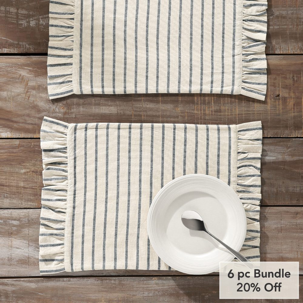 - Sku – 84792 – Kaila Ticking Stripe Ruffled Placemat Set of 2 13×19 (3 Packages)