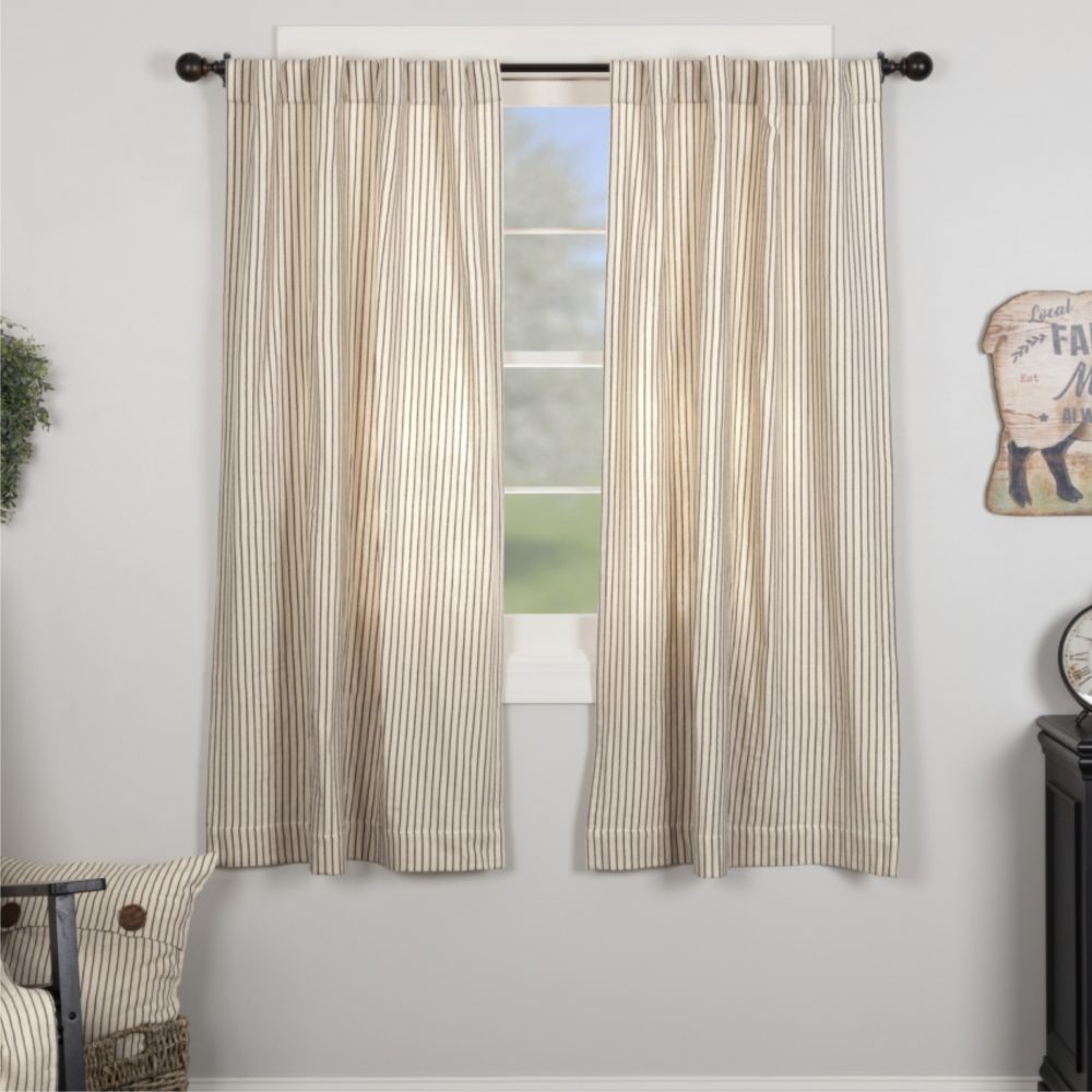 Katie's Vintage Stripe Collection bumps up the farmhouse appeal with the warmth and easy-going charm of old-fashioned ticking combined with luxurious softness in this timeless fabric. A marvelous choice for decor right now the collection has contemporary and up-to-date style, while still adding character and a sense of history to our everyday homes. The repetitive stripe pattern offers a relaxing harmony but keeps the eye moving, bringing distinct visual energy. The curtain fabric is a double-layered fabric that brings rich, softness and a beautiful weight to the drape adding charm and vintage character to your urban farmhouse or vintage cottage. The homespun style, understated tones, and simple no-frill lines keep the look crisp and clean. Layer in additional pieces from Katie's Vintage or other Piper Classic Collections for a more collected, cohesive look.