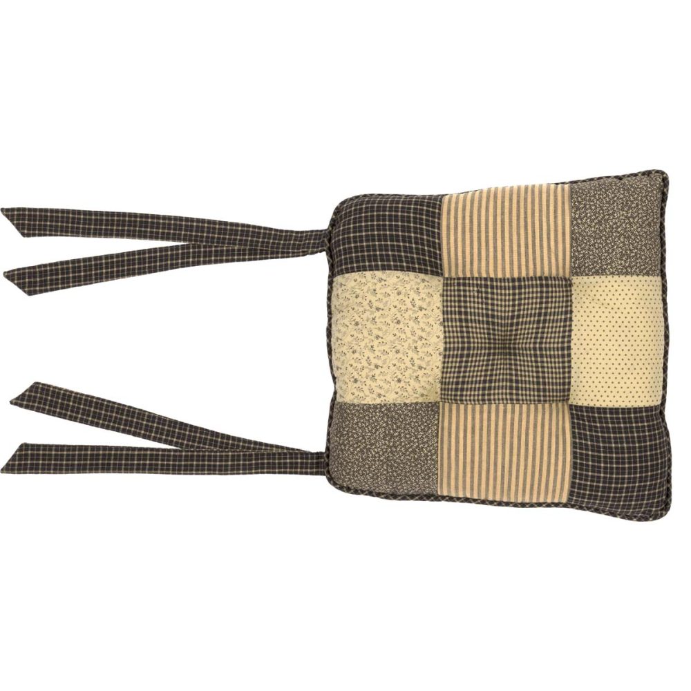 - COUNTRY PATCHWORK: A traditional ninepatch design in a mix of vintage patterns in neutral khaki, black and creme tones, along with a cozy, tufted appearance and comfortable feel make this primitive country chair pad the perfect finishing touch for country farmhouse decor.