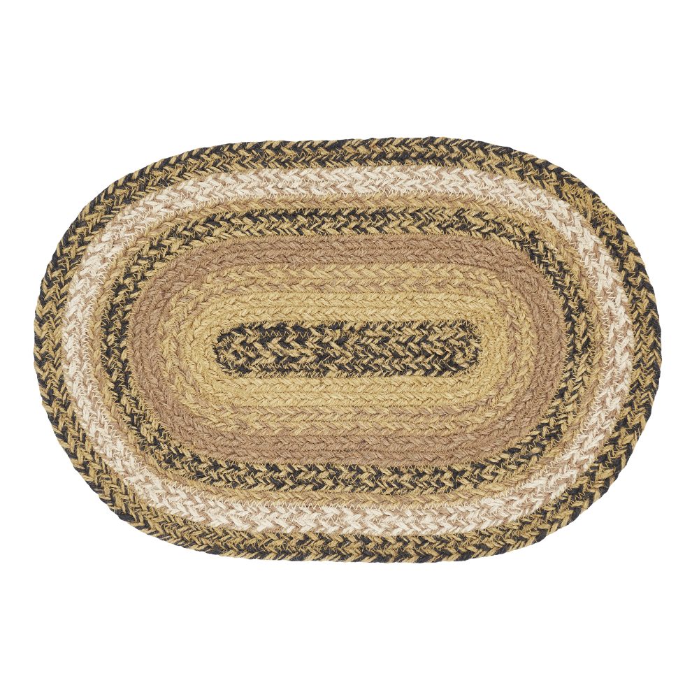 Create a warm, joyful table for friends and family to gather round with natural colors and classic texture. The Kettle Grove Jute Placemat includes an individual oval placemat measuring 10x15 inches made from a premium Jute blend. The rich texture of braided jute is given a primitive feel with natural tan, country black and caramel tones for modern country style. Complete your tabletop decor with other pieces from the Kettle Grove Jute Collection by VHC for timeless farmhouse style.