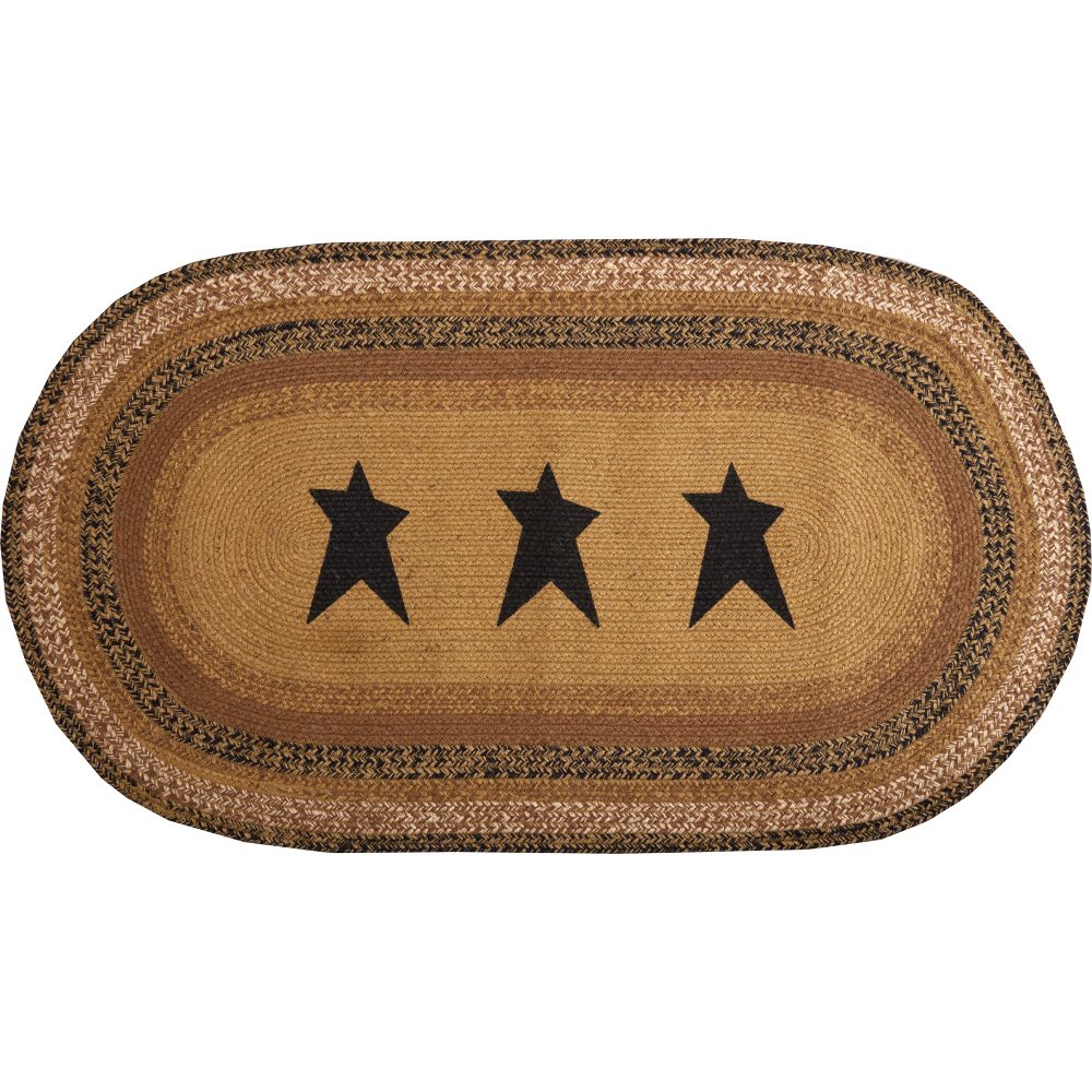 • PRIMITIVE DECOR: Crafted in a traditional style that compliments any primitive or country home. This oval accent rug features black, warm creme, and soft caramel brown hues, whimsically stenciled stars, and a traditional style that adds a timeless primitive touch to any country home.