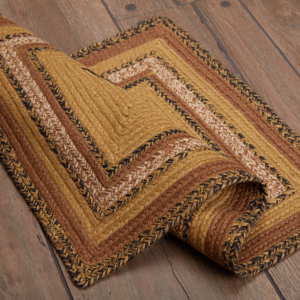 Create a warm, homey feeling with deep primitive colors in a curl-resistant jute blend that adds style and safety to any entryway. The Kettle Grove Jute Welcome Rug measures 20x30 inches and features a classic rectangle shape and tight braids constructed with a durable jute blend. The special blend relaxes faster and stays flat. Features a blend of warm caramel, country black and dark creme for a natural, rustic look that complements a wide array of country farmhouse decor.