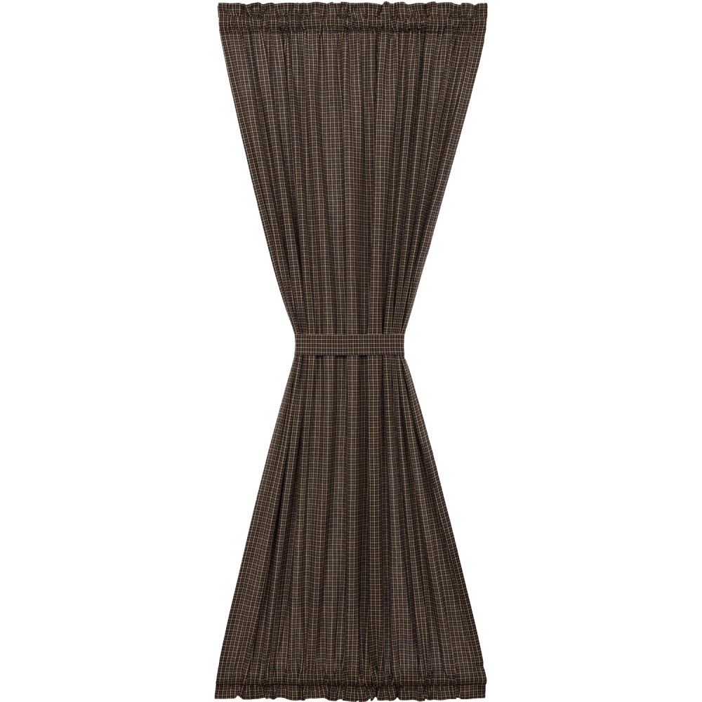 A microcheck plaid in country black with khaki tan stripes provides a delightful country base for a primitive accent piece with timeless style and practical benefits. The Kettle Grove Plaid Door Panel is a 72x40 inch panel crafted in 100 percent cotton with a light filtering lining for additional privacy. This country farmhouse French door panel features a 2 inch rod pocket for easy installation (rod not included). Machine wash on gentle for easy care and line dry for best results. The panel is iron safe. To give your home a complete country chic look, pair with other items from the Kettle Grove Collection including modern primitive swag, panel sets, kitchen accessories, bedding and more.