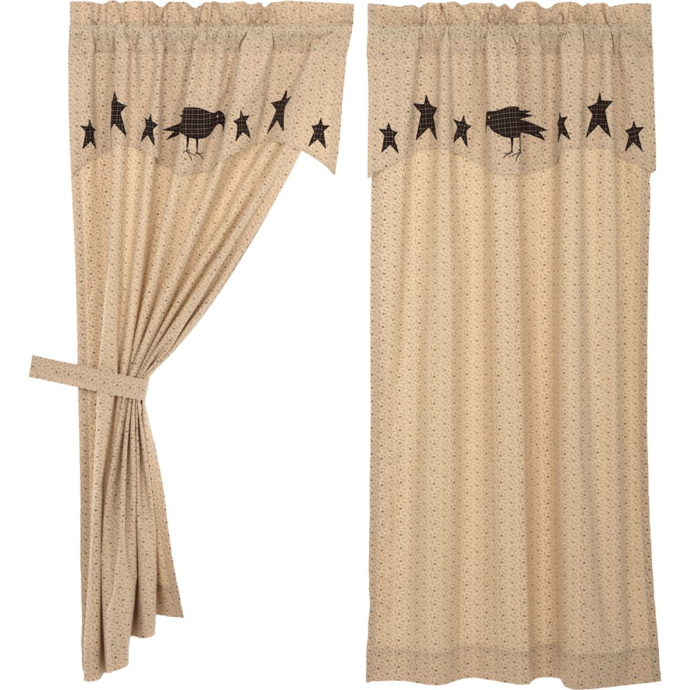 - PRIMITIVE COUNTRY PANEL: Includes two 63 by 36 inch 100% cotton window panel with a 2-inch header and a 3.25-inch rod pocket. Includes two matching tiebacks and an attached valance.