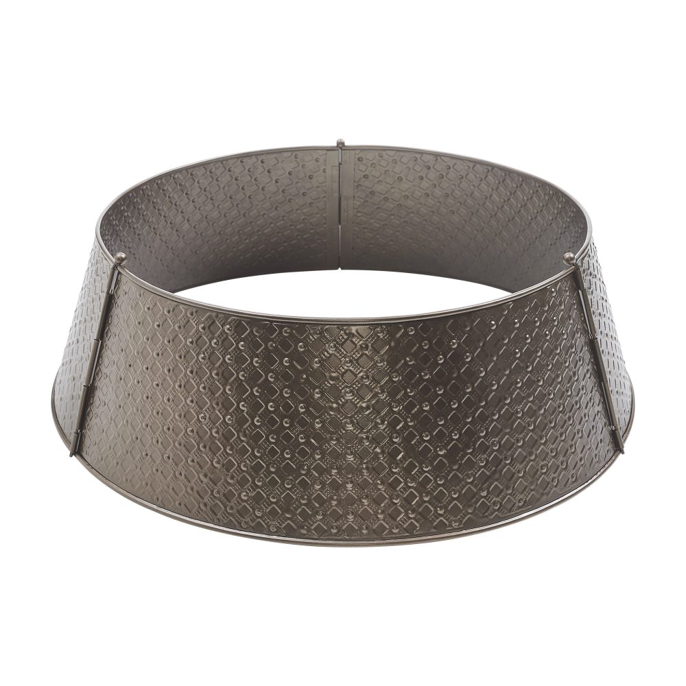 Add rustic elegance to your holiday tree with the VHC Brands Lattice Metal Christmas Tree Collar in a rich bronze finish. Measuring 7.5x24 inches, this beautifully designed tree collar features an intricate lattice pattern that adds texture and visual interest to your festive decor. Its warm bronze shade lends a cozy, vintage-inspired glow, making it a perfect complement to primitive rustic and traditional Christmas themes. Constructed from durable metal, this tree collar is equipped with a convenient hinge pin assembly for easy installation and a secure fit around your tree base. The solid color and classic round shape provide a refined foundation that enhances the overall appearance of your holiday centerpiece. This accessory serves as a stylish alternative to traditional tree skirts, combining practicality with timeless charm. Ideal for display throughout your home-in the bathroom, bedroom, dining room, entryway, kitchen, or living room-this Lattice Metal Christmas Tree Collar brings warmth and festive spirit to any space. Maintenance is simple with a quick wipe using a soft cloth to keep its radiant bronze finish vibrant year after year. This elegant piece is a must-have for creating a cohesive and inviting Christmas atmosphere.