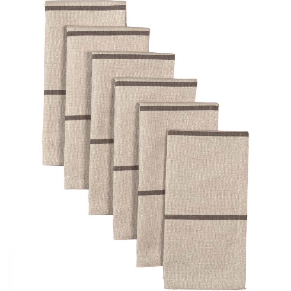 Inspired by vintage continental stripes, the Lauren Slate Napkin Set of 6 keeps the look stylishly simple. Featuring tasteful grey stripes on a neutral background. This classic cotton napkin set easily pairs with many different styles, perfect for casual family dinners or parties.