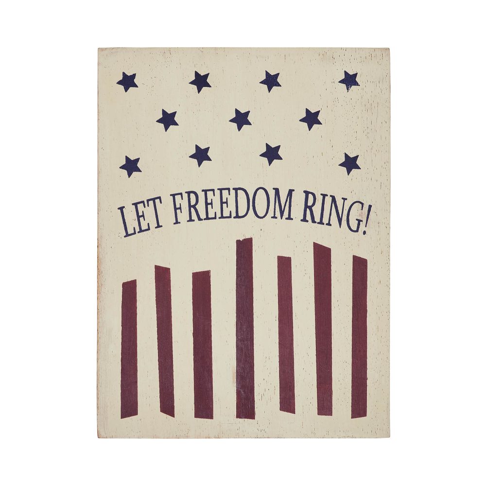 - Let Freedom Ring Wooden Block: Introducing the VHC Brands Patriotic Let Freedom Ring Wooden Block, a captivating 8x6x1.25-inch printed tropical wood figurine designed to infuse your Independence Day decor with the spirit of freedom and patriotism.