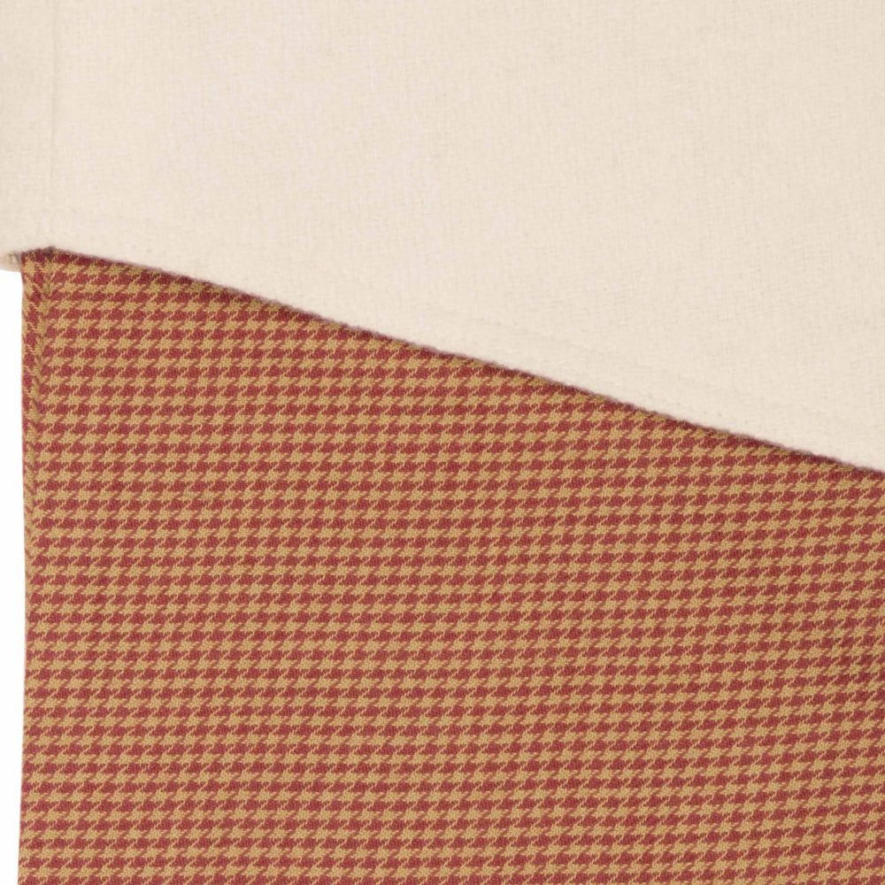 • DETAILED FEATURES: This truly festive snowman stocking features apple red and almond micro-houndstooth cotton fabric with an appliqued snowman in creme felt. The happy snowman is delightfully accented with red ribbon, jute twine, and embroidery to bring the picture to life. Finished with a creme felt Slanted cuff. Both the body and cuff are lined in creme taffeta. Reverses to the same as front but without snowman applique.