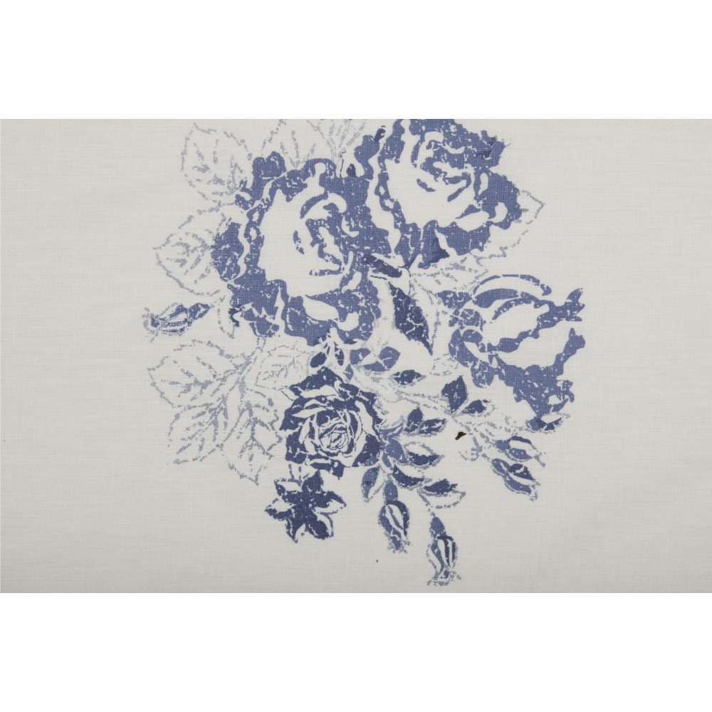 - 100% lightweight, breathable cotton, backed w/cotton sheeting. A soft white background with floral motif in blue tones.