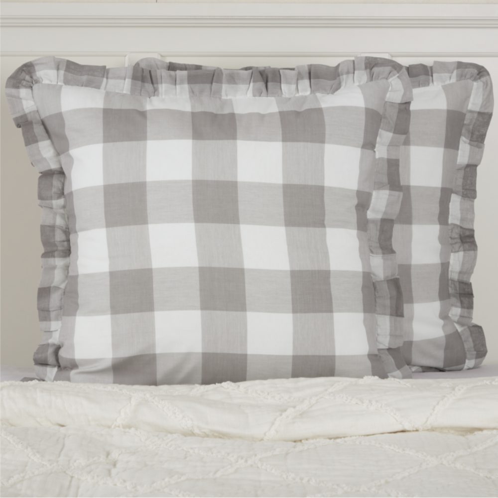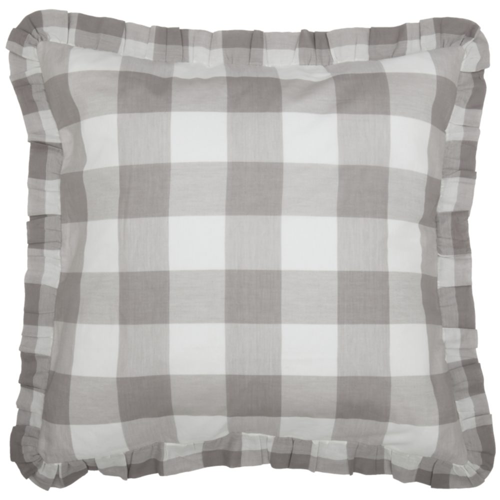 You're going to love the way the Madison Check Collection marries carefree, country casual with fresh farmhouse flair. The delightful design of classic buffalo plaid is the perfect choice for your updated, modern lifestyle right now. Legendary Americana style gets a fresh look with large gray and soft white blocks, creating a easy-going, repeating pattern with bold, chunky colors. The fabric of this visually appealing collection brings natural cotton to your home in a dreamy, lightweight, semi-sheer voile. Airy, casual elegance reigns supreme with this summer-weight fabric that adds a sweet, soft touch, in a welcome, revised classic. The gray and white color combination has universal, relevant appeal in today's farmhouse decor, consistently ranking as a favorite. The Madison Check Euro Sham is lined with cotton.