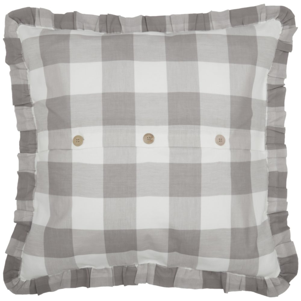 - Pillowcase reverses to the same checked fabric on the back. The fabric is sheer so it is lined with white cotton sheeting on the front and back to prevent the pillow from showing. Three wooden buttons on the back keep the pillow insert secure.