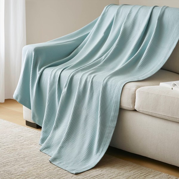 Wrap yourself up in the luxurious comfort of the Madison Park Egyptian Cotton Blanket. This ultra-soft Light Blue blanket in made from 100% certified Egyptian cotton that features reduced shrinkage, pilling, and snagging, for a durable and comfortable feel. The solid pattern of the blanket makes it easy to match with your existing casual decor. Machine washable this Egyptian cotton blanket is perfect for lying across your bed or sofa to keep warm and cozy all year round.