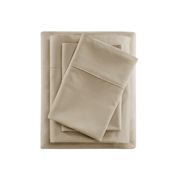 Madison Park 600 Thread Count Cooling Cotton Blend 4 PC Sheet Set in Khaki, King MP20-8973