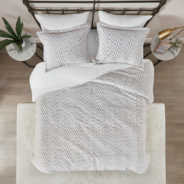 Add a casual and irresistibly soft touch to your bedroom with Madison Park’s Adelyn Ultra Plush duvet cover Set. Brushed long fur on the face of the duvet cover flaunts a chevron pattern that is highlighted by darker shades to create additional depth. Matching shams (1 in Twin/TwinXL) spreads the ultra-soft texture to the head of the bed and features a two inch flange for added charm. This bedding set is also OEKO-TEX certified, meaning it does not contain any harmful substances or chemicals to ensure quality comfort and wellness. A zipper closure secures a padded insert within the duvet cover and inside corner ties prevent it from shifting (insert is NOT included). Machine washable for easy care, this duvet cover set makes a stunning addition to your home.