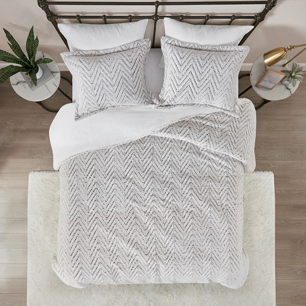 Add a casual and irresistibly soft touch to your bedroom with Madison Park’s Adelyn Ultra Plush Down Alternative Comforter Set. Brushed long fur on the face of the comforter flaunts a chevron pattern that is highlighted by darker shades to create additional depth. The down alternative filling provides a superior layer warmth and comfort. A matching sham spreads the ultra-soft texture to the head of the bed and features a two inch flange for added charm. Easy to care for, this plush comforter set is machine washable and offers a cozy feel to your space and is also OEKO-TEX certified, meaning it does not contain any harmful substances or chemicals to ensure quality comfort and wellness. Items in the set may come in a rolled or compressed packaging, which will need to be fluffed up or steam ironed before use to remove wrinkles.