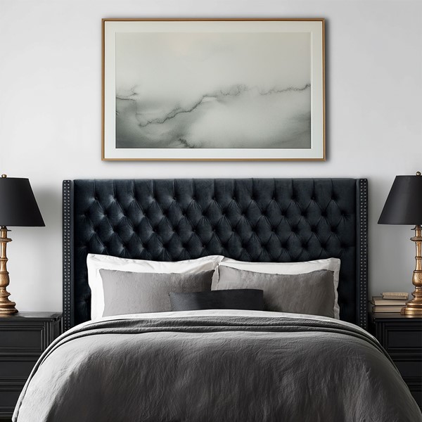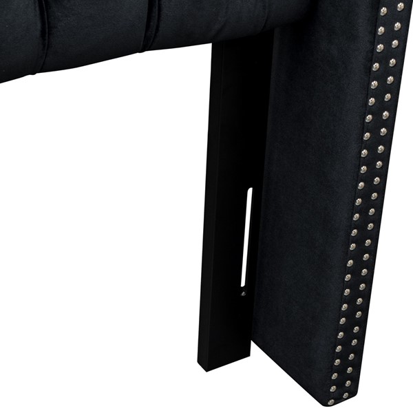*Headboard features a classic wingback silhouette, hand-tufted button detailing, and a double row of individually applied nailhead trim