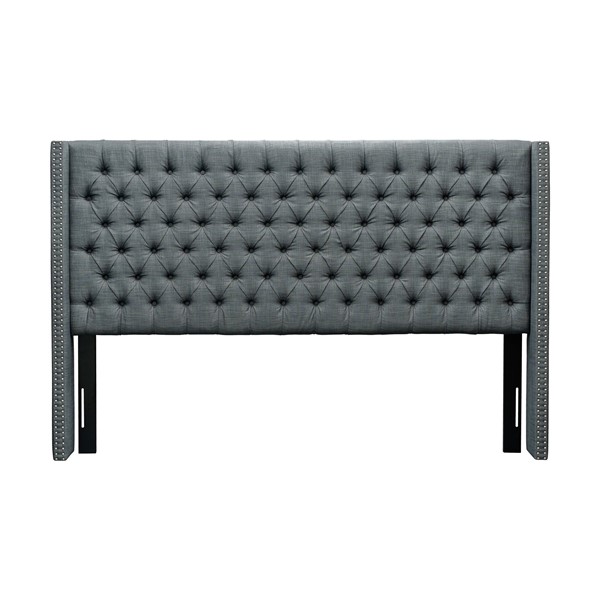 Madison Park Amelia Upholstered Wingback Headboard with Button Tufting & Nailhead Trim in Dark Grey Woven, King MP116-1293