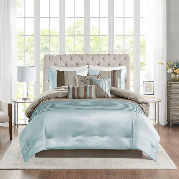 * Transitional style 7 piece comforter set in pintucking and embroidery details