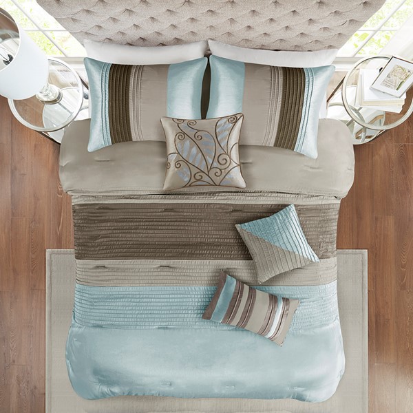 Madison Park Amherst 7 Piece Comforter Set in Blue, Queen MP10-042