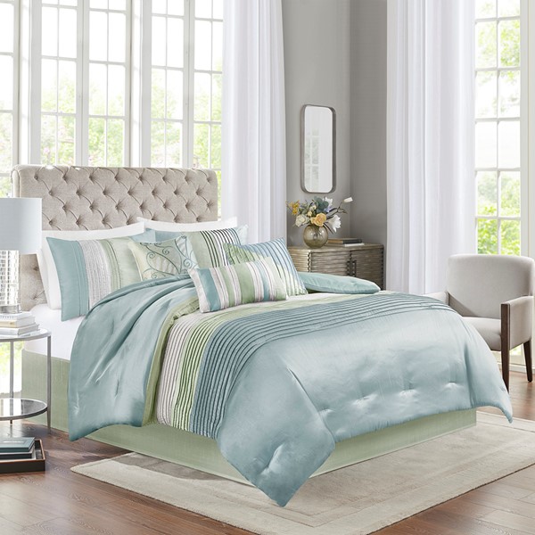 * Transitional style 7 piece comforter set in pintucking and embroidery details