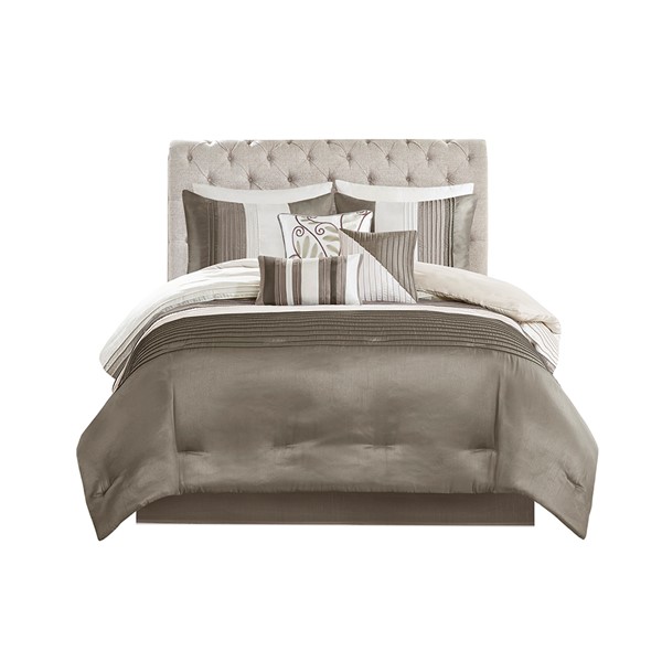 * Transitional style 7 piece comforter set in pintucking and embroidery details