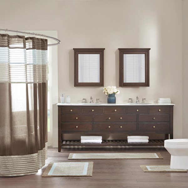 The Madison Park Amherst Cotton Tufted Bath Rug Collection provides a stylish and sophisticated look for your bathroom. Made from 100% tufted cotton, this rug is machine washable and incredibly soft for your feet to rest on. With its skid resistant reverse, the neutral color palette, and border design of this cotton bath rug is sure to bring new life into your bathroom decor. Multiple sizes and colors are available and sold separately, perfectly providing endless style options to suit any bathroom size and decor!