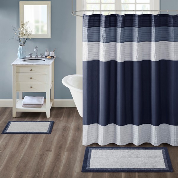 Madison Park Amherst Cotton Tufted Bath Rug in Navy, 24×60″ MP72-6206