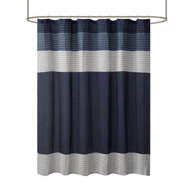 Easily transition your bathroom with this simple, yet beautifully classic shower curtain. The faux silk dupioni fabric has a natural light sheen and drapes beautifully, while also machine washable for easy care. This lightweight shower curtain features pieced and pintucking details creating a rich texture and a unique color block design, sure to freshen up any space. Pattern layout may vary due to variation of sizes. A water repellant liner is not included, and highly recommended. Complete the collection and look with coordinate bath decor, bedding, and window decor – available and sold separately.