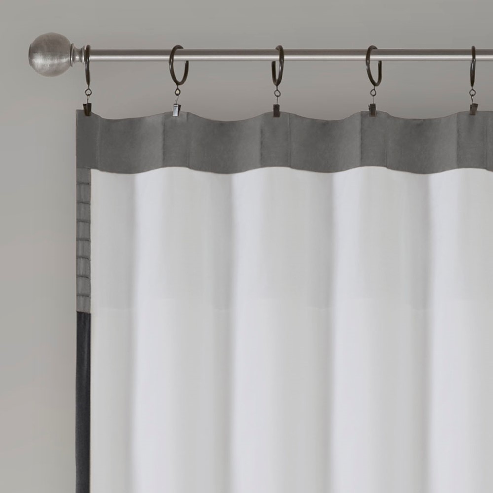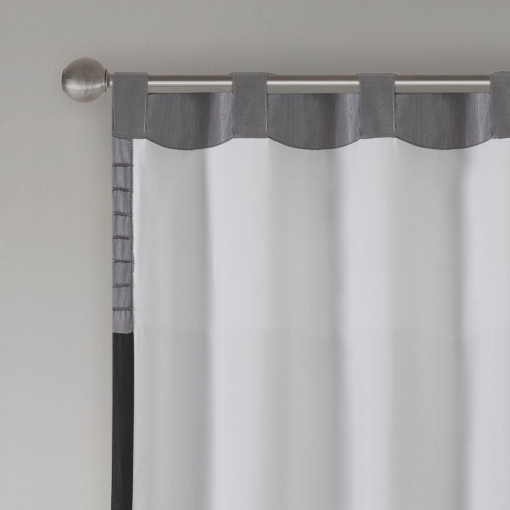 Madison Park Amherst Polyoni Pintuck Window Curtain is a simple way to add style to your room. This window panel features a modern striped design in dark hues of black, charcoal, and silver combined with pintuck detailing for beautiful texture and dimension. The added lining helps filter the perfect amount of light and creates fullness for better drapability. Simply hang using rod pocket or with back tabs for a tailored look. This window curtain fits up to a 1.25″ diameter rod.
