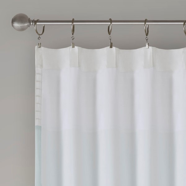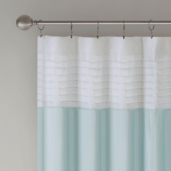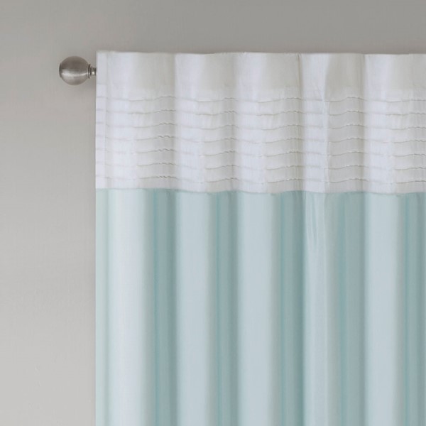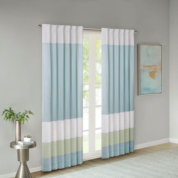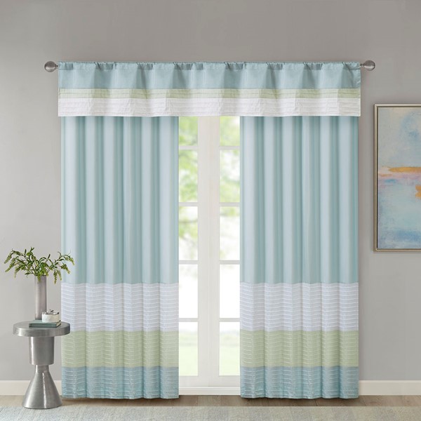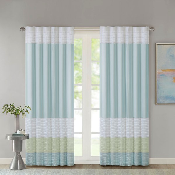 Madison Park Amherst Polyoni Pintuck Window Curtain is a simple way to add style to your room. This window panel features a modern striped design in soft hues of green, aqua, and ivory combined with pintuck detailing for beautiful texture and dimension. The added lining helps filter the perfect amount of light and creates fullness for better drapability. Simply hang using rod pocket or with back tabs for a tailored look. This window curtain fits up to a 1.25" diameter rod.